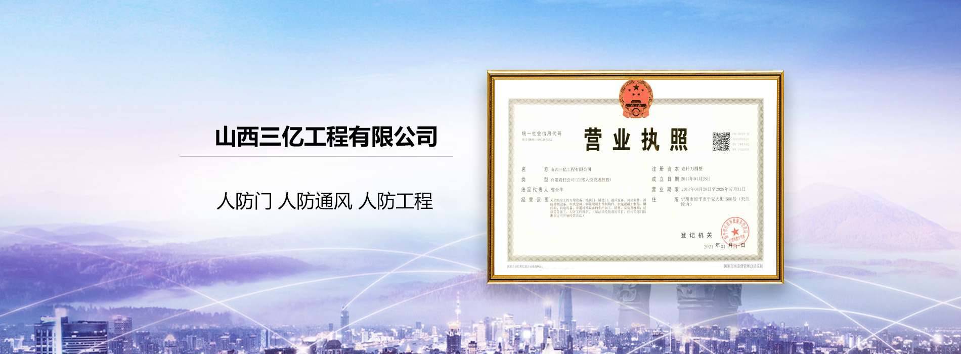 山西三億工程有限公司是經(jīng)人民防空辦公室批準(zhǔn)的人防工程的生產(chǎn)和定點(diǎn)安裝企業(yè)。公司及研發(fā).制造.銷售.服務(wù)于一體,產(chǎn)品通過 ISO9001 質(zhì)量認(rèn)證,并列入《人民防空設(shè)備產(chǎn)品目錄》。
